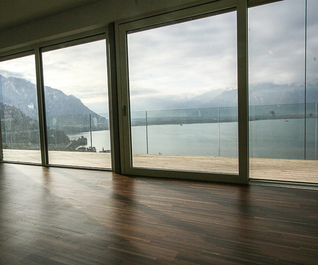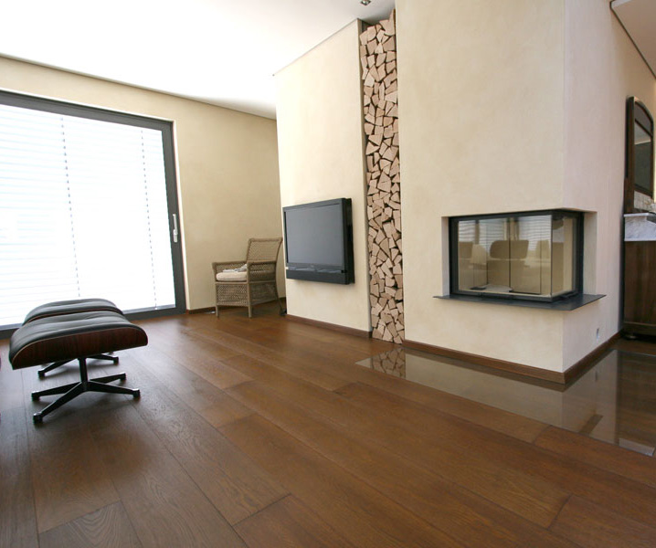 gekittet, geölt, längsseitig gefast, angeräuchert und weiß geölt
